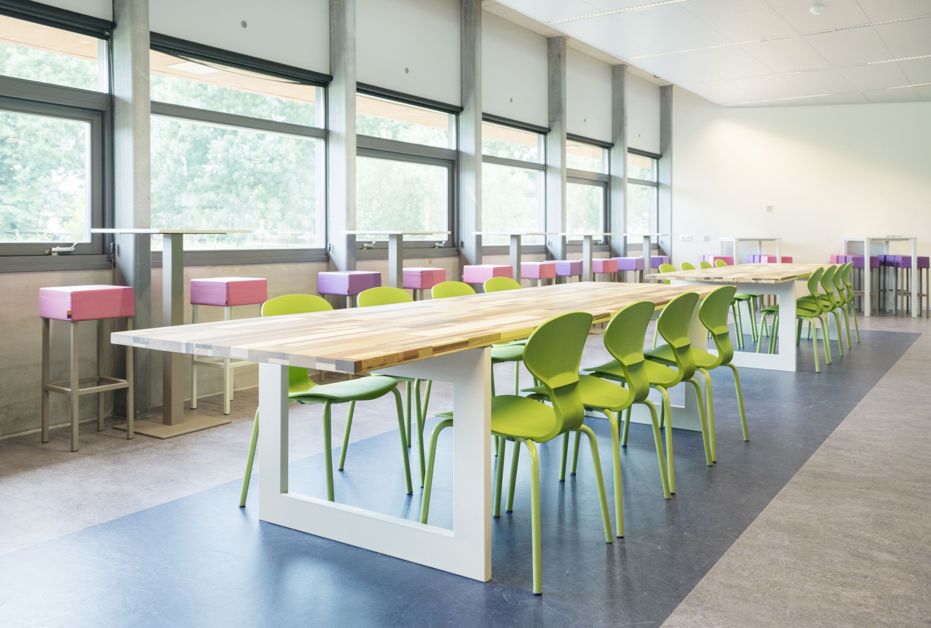 In opdracht van EromesMarko hebben we deze tafel gemaakt voor een aula op een school in het hoge noorden van het land. Het model is bijzonder geschikt voor de wat grotere afmetingen en de o poten nemen daarnaast weinig ruimte in beslag zodat er optimaal plek overblijft voor zitplaatsen.